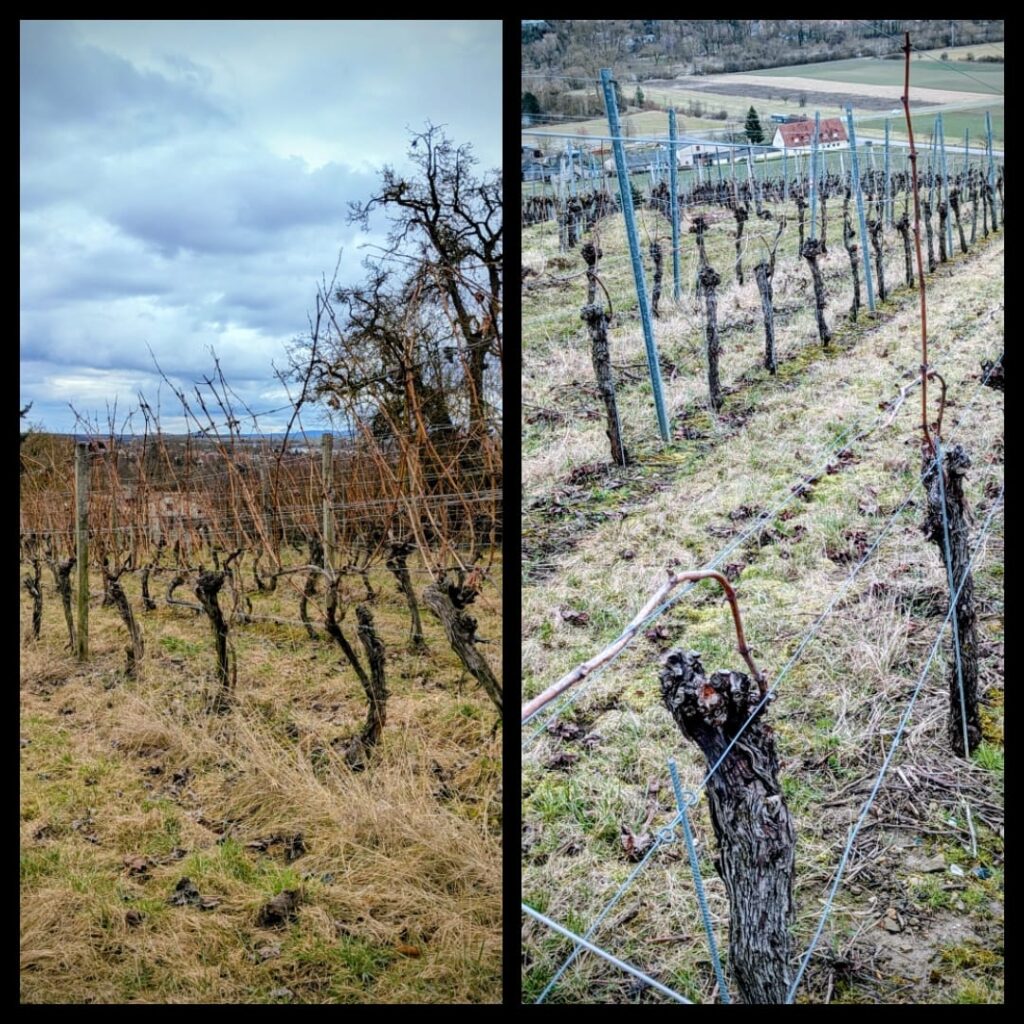 wir haben unseren Rebschnitt für heuer beendet und sind aktuell am Drahtanlage richten und parallel dazu schon am Anbinden!!!